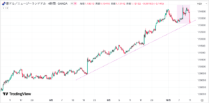 NZ利下げ後の上昇が速く、注文が追い付かずに少し取り損ねました。豪ドル/NZドルは週末に向け下落していて、損切りは必要なかったです。