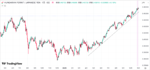 10月26日週のフォリント/円は、0.4554で始まり0.4552まで下げましたが、0.4599まで上昇し0.4573で週末クローズとなりました。