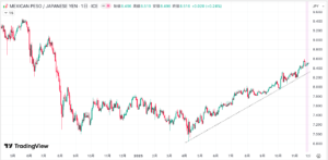 11月23日週のメキシコペソ/円は、8.473で始まり8.432まで下落しましたが、8.540まで上昇し8.536でクローズとなりました。
