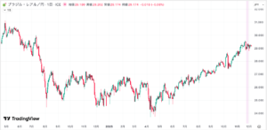 IG証券のブラジルレアル/円のスワップはあまり政策金利の上昇が反映されず、残念ながら9%程度と低いままです。ドル/レアルは約10%で、米の政策金利が3.75〜4%なので比較的政策金利差に近くなっています。米利下げによる金利差拡大で、スワップ増額もありそうです。
