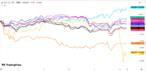 他の通貨は週間マイナスで、ブラジルレアルが急落して最下位となっています。ボルソナロ前大統領の息子が大統領選に出馬表明をしたようです。