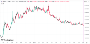 米ドル/メキシコペソの売りを100,000通貨保有としていましたが、トランプ関税相場に耐えられず半分に減らしています。