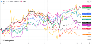 今週は米FOMCで利下げとなり米ドル安となりましたが、利上げ観測でも円も弱く、クロス円が強めとなりました。