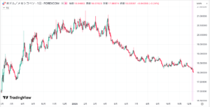 米ドル/メキシコペソの売りを100,000通貨保有としていましたが、トランプ関税相場に耐えられず半分に減らしています。