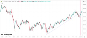 ブラジルの政策金利は15%で、スワップもトルコリラ、ハンガリーフォリントに次ぐ高率となっています。