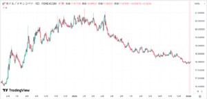 米ドル/メキシコペソの売りを100,000通貨保有としていましたが、今年前半のトランプ関税相場に耐えられず半分に減らしています。