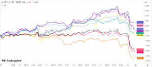 一方でインドルピー、トルコリラ、米ドルがマイナスで下位となりました。