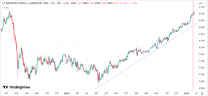 米ドル/メキシコペソの売りを100,000通貨保有としていましたが、昨年前半のトランプ関税相場に耐えられず半分に減らしています。