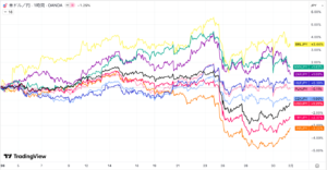 一方でインドルピーが最下位で、南アフリカランドも急落しています。