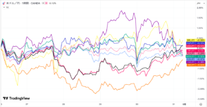 貴金属上昇で資源国の通貨が強かったですね。23日の日米協調レートチェック以降大きく振れました。