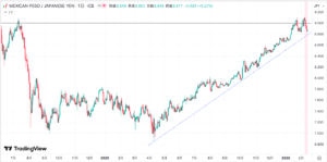 メキシコペソは高値更新となりましたが、なかなか9円台に定着できませんね。